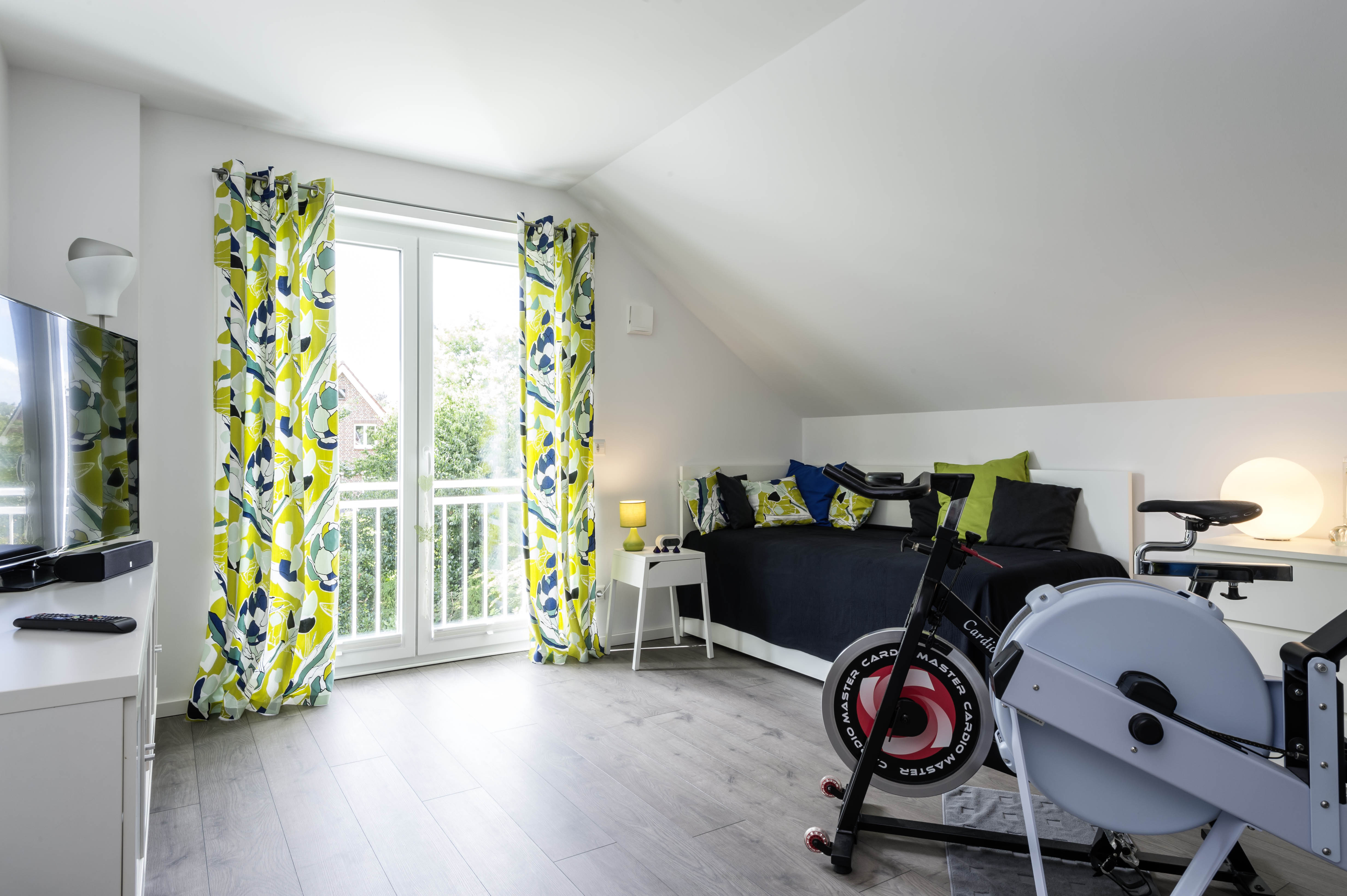 Maria und Sören haben sich bewusst für einen umweltgerechten Lebensstil entschieden. Und der lässt sich eben am besten mit smarten Technologien verwirklichen. Denn sie garantieren nicht nur mehr Wohnkomfort – mit nur einem Tastendruck lassen sich Online-Wetterprognosen oder vorprogrammierte Licht- und Musikszenarien abrufen (besonders praktisch für die Kochevents) –, sondern helfen auch beim Energiesparen. So regelt sich beispielsweise die Heizung per Zeitschaltuhr automatisch auf den Nachtbetrieb herunter. Ein weiteres Plus: Die Technik lässt sich einfach, weil intuitiv am Multitouch-Display bedienen – im Green Living Space verbaut ist der Gira G1, die 9 x 16 cm große Bedienzentrale für die gesamte KNX Gebäudetechnik. KNX ist der weltweit führende Standard in der kabelgebundenen Bus-Technik. Voraussetzung für die intelligente Vernetzung via KNX ist ein Kabel, das parallel zur Stromleitung unterputz verlegt wird. Die Intelligenz steckt in den Sensoren. Diese Geräte – Tastsensoren genannt – ersetzen die herkömmlichen Tastschalter. Sie versenden Steuerbefehle an Leuchten, Jalousien, die Musikanlage und andere mit dem KNX verbundene Geräte. Holger Tielesch, Projektmanager bei Gira: „Wir haben uns selbstverständlich an diesem Projekt beteiligt, weil wir damit zeigen können, dass auch hochwertige, erweiterbare und datensichere Konzepte per KNX smart, flexibel und bezahlbar sind. Und dass Technik auch Spaß macht – Spot an, Musik laut, Licht gedimmt, alles auf Tastendruck. Nur die Kerzen muss man noch selbst anzünden.“