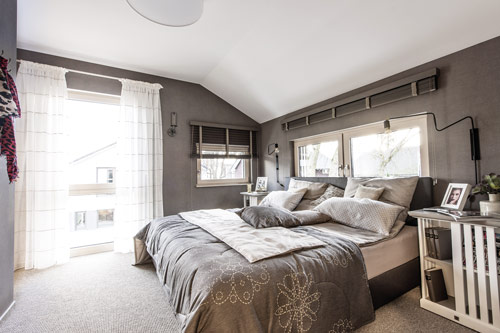 Im Inneren des Hauses bieten rund 176 Quadratmeter reichlich Platz zum Leben, Wohlfühlen und Arbeiten – perfekt zum Beispiel für eine vierköpfige Familie.  Das Herz des Musterhauses ist der große, lichte Wohn-Ess-Bereich, der Rückzugs- und Familienort zugleich ist. Echte Hingucker sind der von symmetrisch angeordneten Eckverglasungen eingerahmte Erker und der Essbereich vor der überdachten Terrasse. Der großzügige Küchenbereich ist perfekt in den Raum integriert. Auch die anderen Räume wie zum Beispiel das geräumige Schlafzimmer mit eigener Ankleide und En-suite-Badezimmer begeistern.