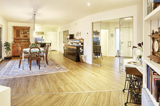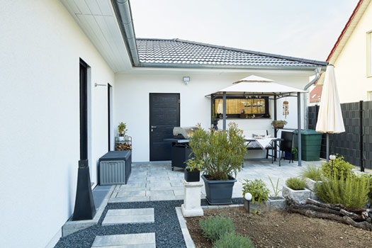 Entstanden ist dank der perfekten Umsetzung durch LUXHAUS letztendlich ein moderner, energieeffizienter und barrierefreier Walmdachbungalow mit rund 190 Quadratmeter Wohnfläche und einem großzügigen Wohn- und Essbereich. Bodentiefe Elemente und Holz im Inneren sowie die zeitlose Außengestaltung machen das Haus zu einem echten Wohlfühlort, mit dem die Köhlers vollkommen zufrieden sind. Die moderne Inneneinrichtung schmücken hie und da antike Accessoires.